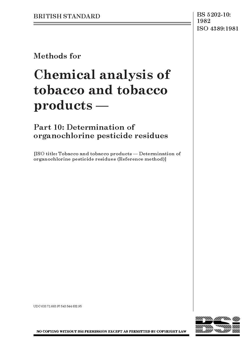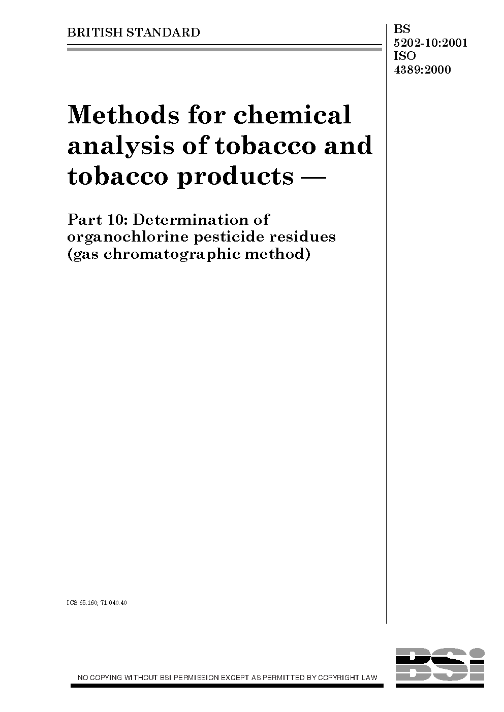 Methods for chemical analysis of tobacco and products Determination organochlorine pesticide residues (gas chromatographic method)