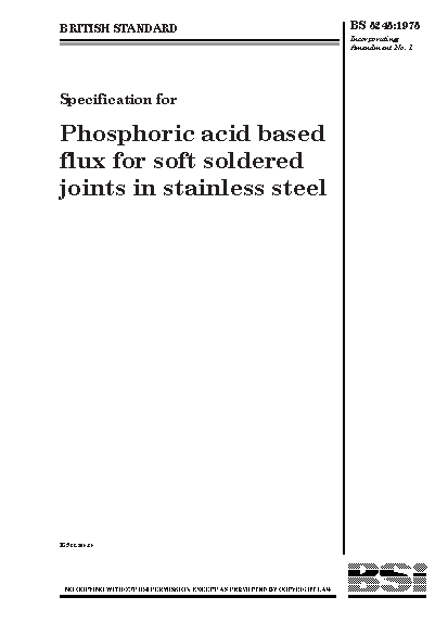 Specification for phosphoric acid based flux for soft soldered joints in stainless steel