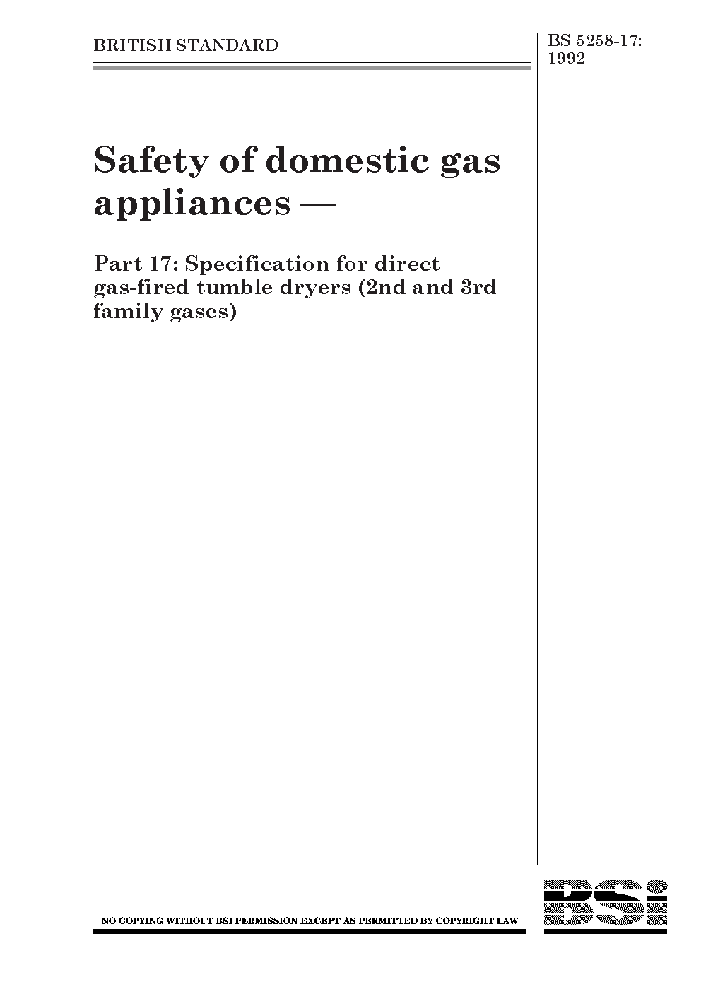 Safety of domestic gas appliances Specification for direct gas-fired tumble dryers (2nd and 3rd family gases)