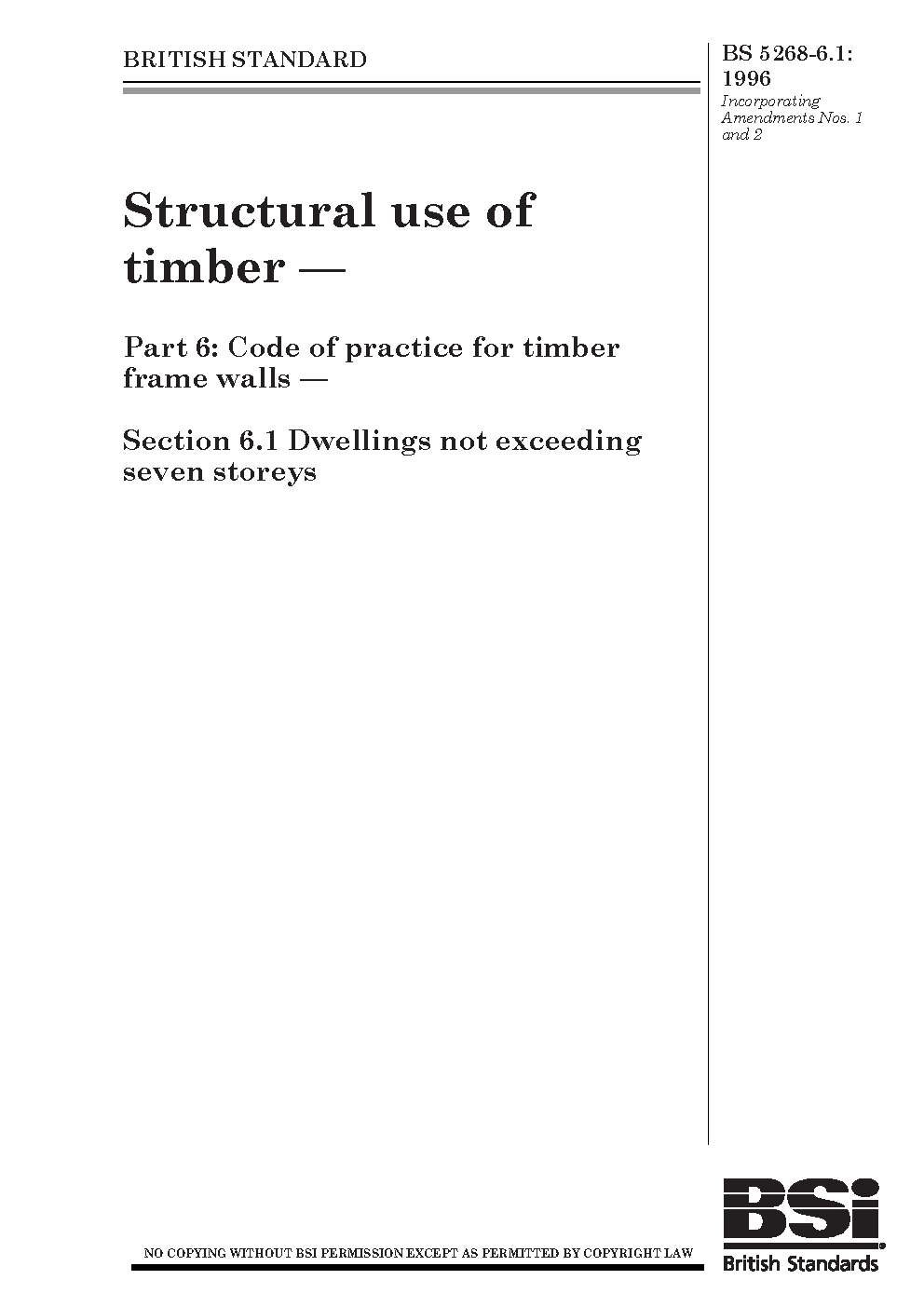 Structural use of timber Code practice for frame walls Dwellings not exceeding seven storeys