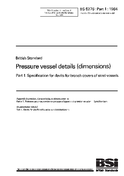 Pressure vessel details (dimensions) Specification for davits branch covers of steel vessels