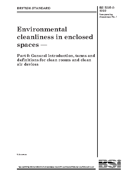 Environmental cleanliness in enclosed spaces General introduction, terms and definitions for clean rooms air devices