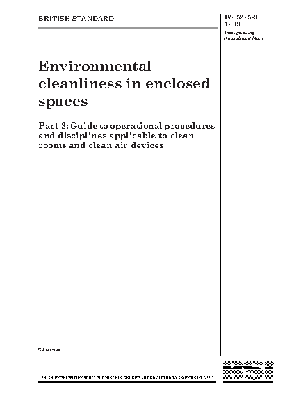 Environmental cleanliness in enclosed spaces Guide to operational procedures and disciplines applicable clean rooms air devices