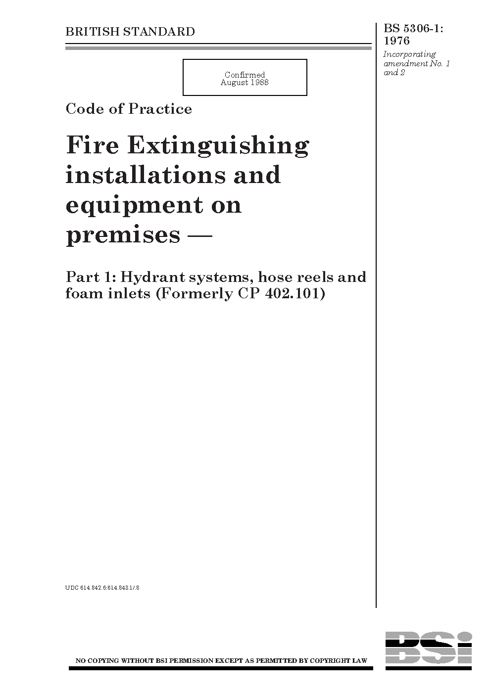 Fire extinguishing installations and equipment on premises Hydrant systems, hose reels foam inlets