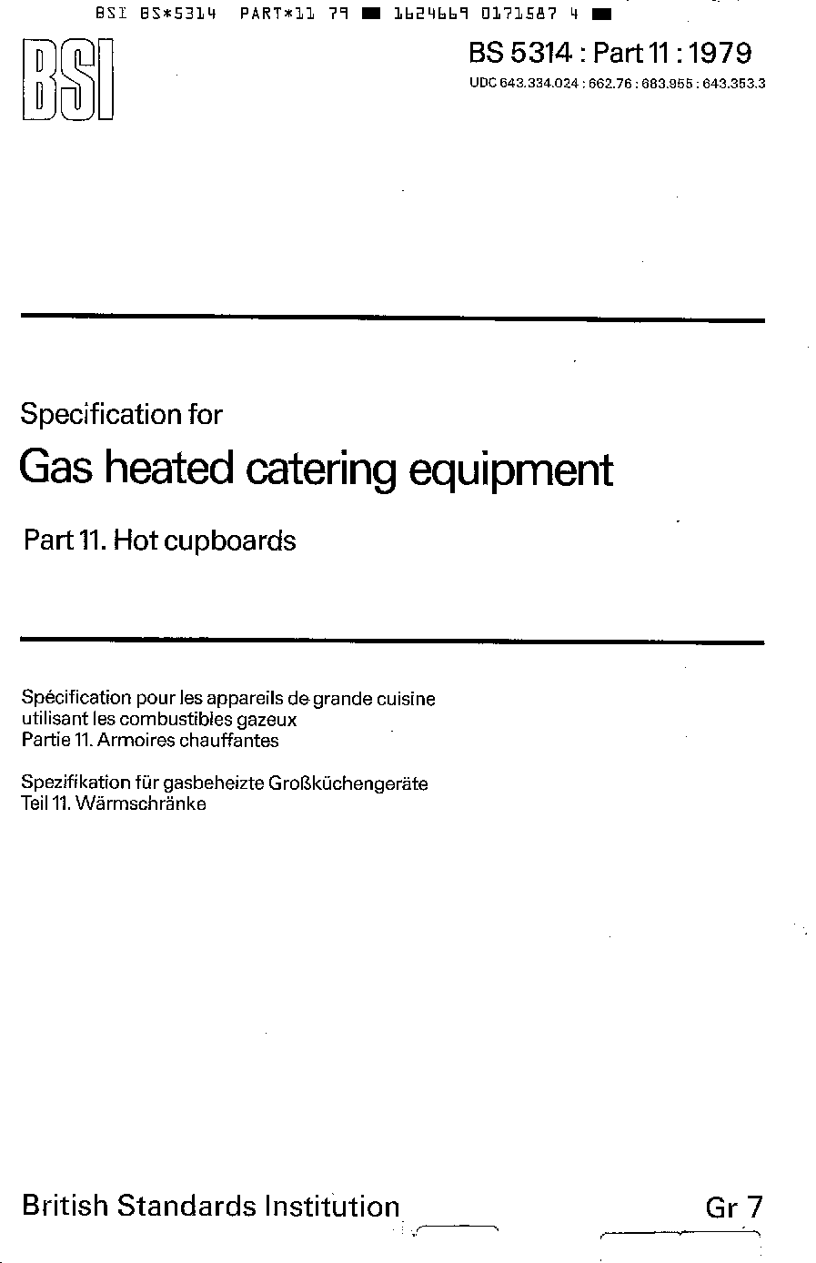 Specification for gas heated catering equipment Hot cupboards