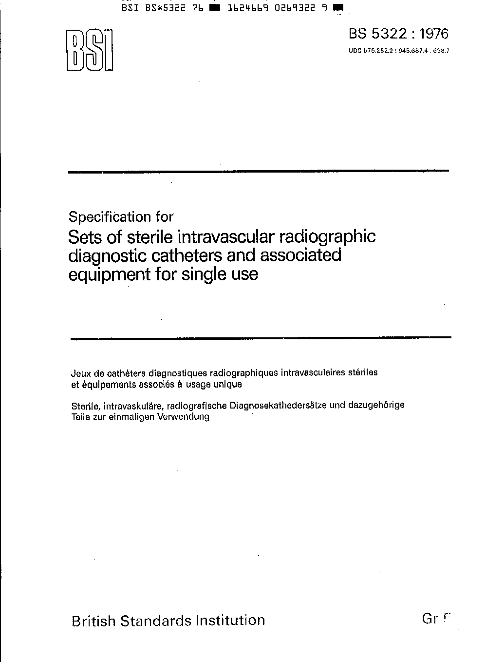 Specification for sets of sterile intravascular radiographic diagnostic catheters and associated equipment for single use