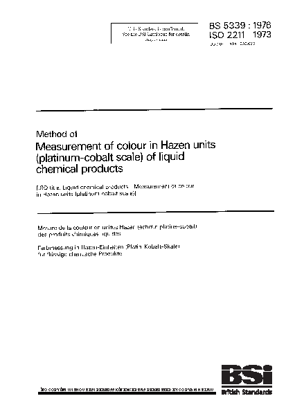 Method of measurement of colour in Hazen units (platinum-cobalt scale) of liquid chemical products