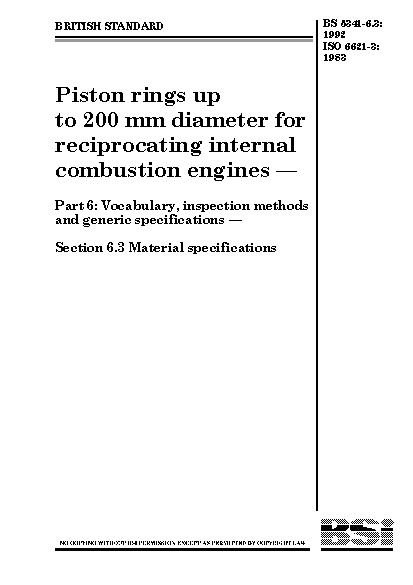 Piston rings up to 200 mm diameter for reciprocating internal combustion engines. Vocabulary, inspection methods and generic specifications Material