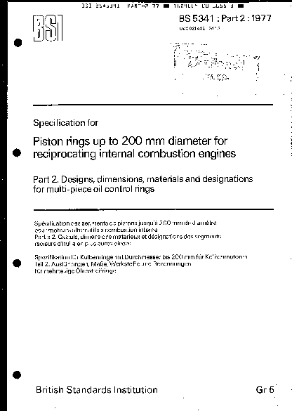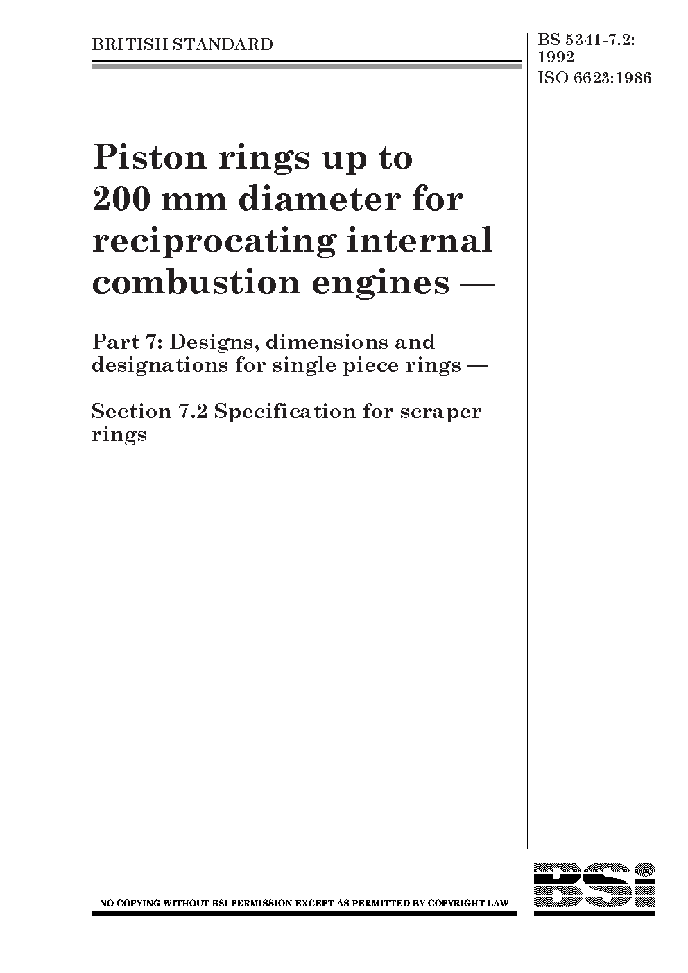 Piston rings up to 200 mm diameter for reciprocating internal combustion engines. Designs, dimensions and designations single piece rings. Specification scraper