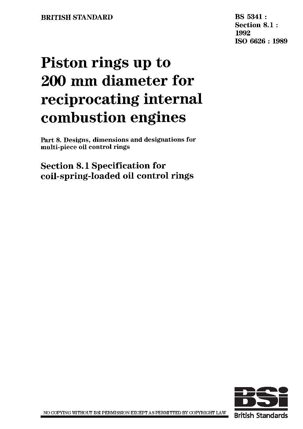 Pistons;Springs;Reciprocating engines;Reciprocating parts;Internal combustion engines;Piston rings;Engine components;Classification systems;Oil control piston rings;Force;Dimensions
