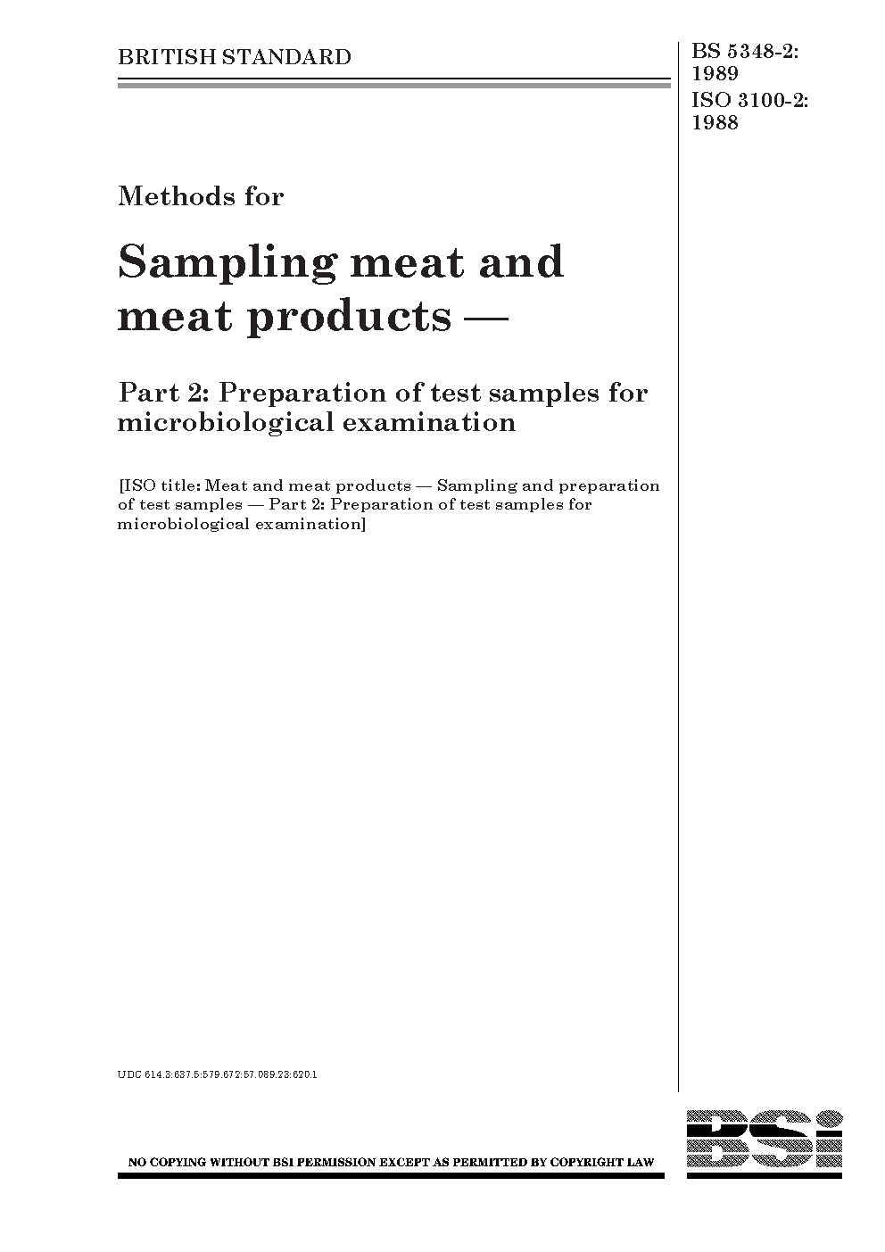 Methods for sampling meat and products Preparation of test samples microbiological examination