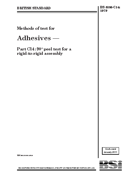 Adhesives;Jigs;Test specimens;Peeling tests;Test equipment;Dimensions;Specimen preparation;Mechanical testing;Testing conditions;Adhesion tests;Test methods;Adhesive-bonded joints