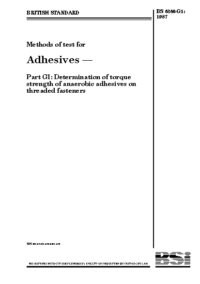 Methods of test for adhesives. Tests on anaerobic adhesives Determination torque strength threaded fasteners