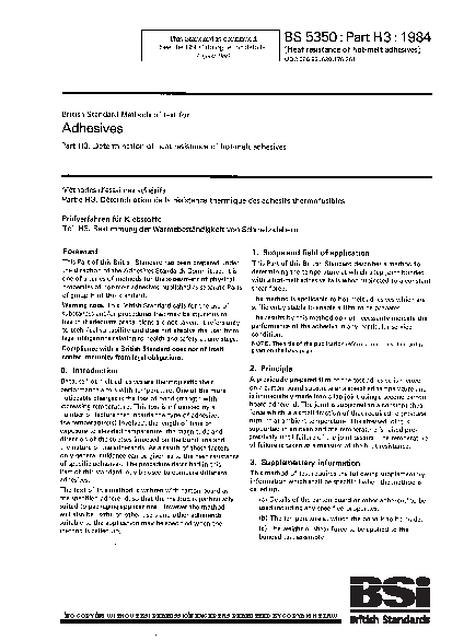 Methods of test for adhesives. Physical tests on hot-melt adhesives Determination heat resistance