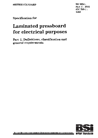 Specification for laminated pressboard electrical purposes Definitions, classification and general requirements