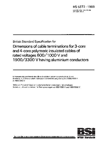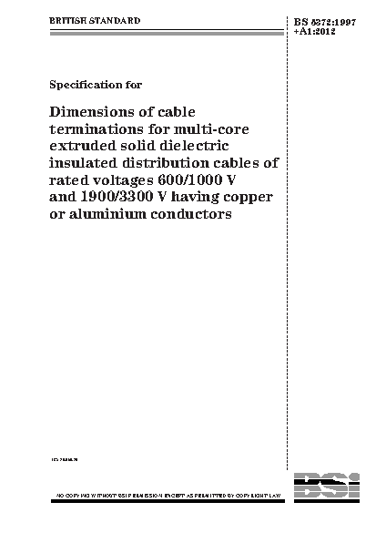 Specification for Dimensions of cable terminations for multi-core extruded solid dielectric insulated distribution cables of rated voltages 600/1000 V and 1900/3300 V having copper or aluminium conductors