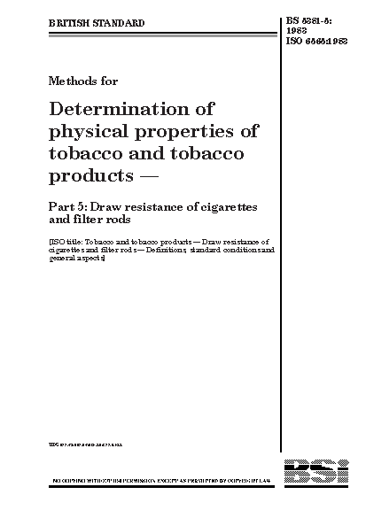 Methods for determination of physical properties tobacco and products Draw resistance cigarettes filter rods