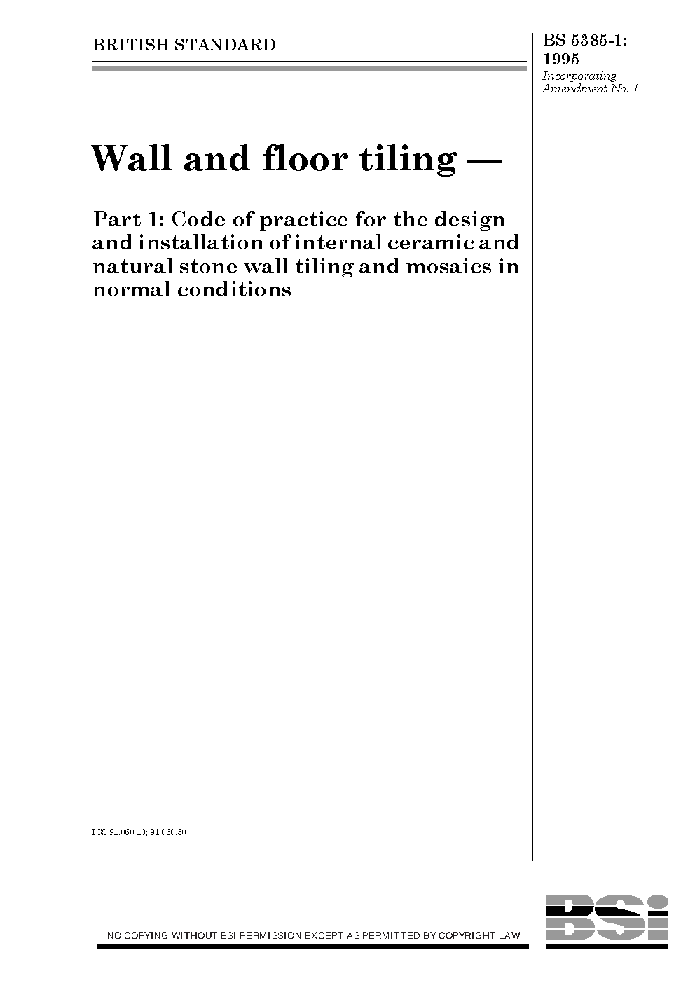 Wall and floor tiling Code of practice for the design installation internal ceramic wall mosaics in normal conditions