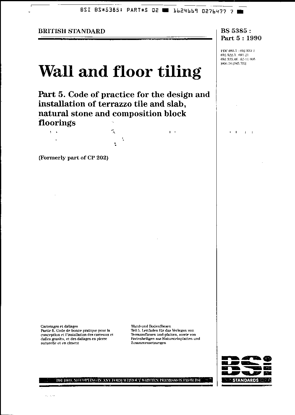 Wall and floor tiling Code of practice for the design installation terrazzo tile slab, natural stone composition block floorings