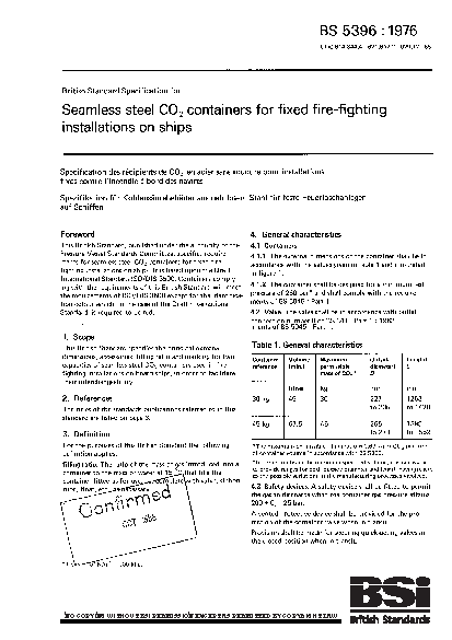 Specification for seamless steel CO2 containers for fixed fire-fighting installations on ships