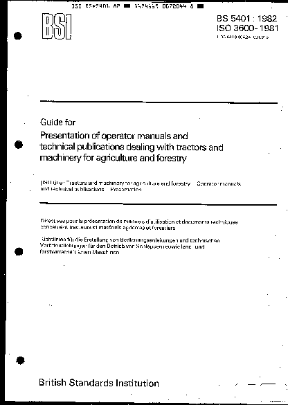 Guide to information content and presentation of operators' manuals provided for tractors and machinery for agriculture and forestry