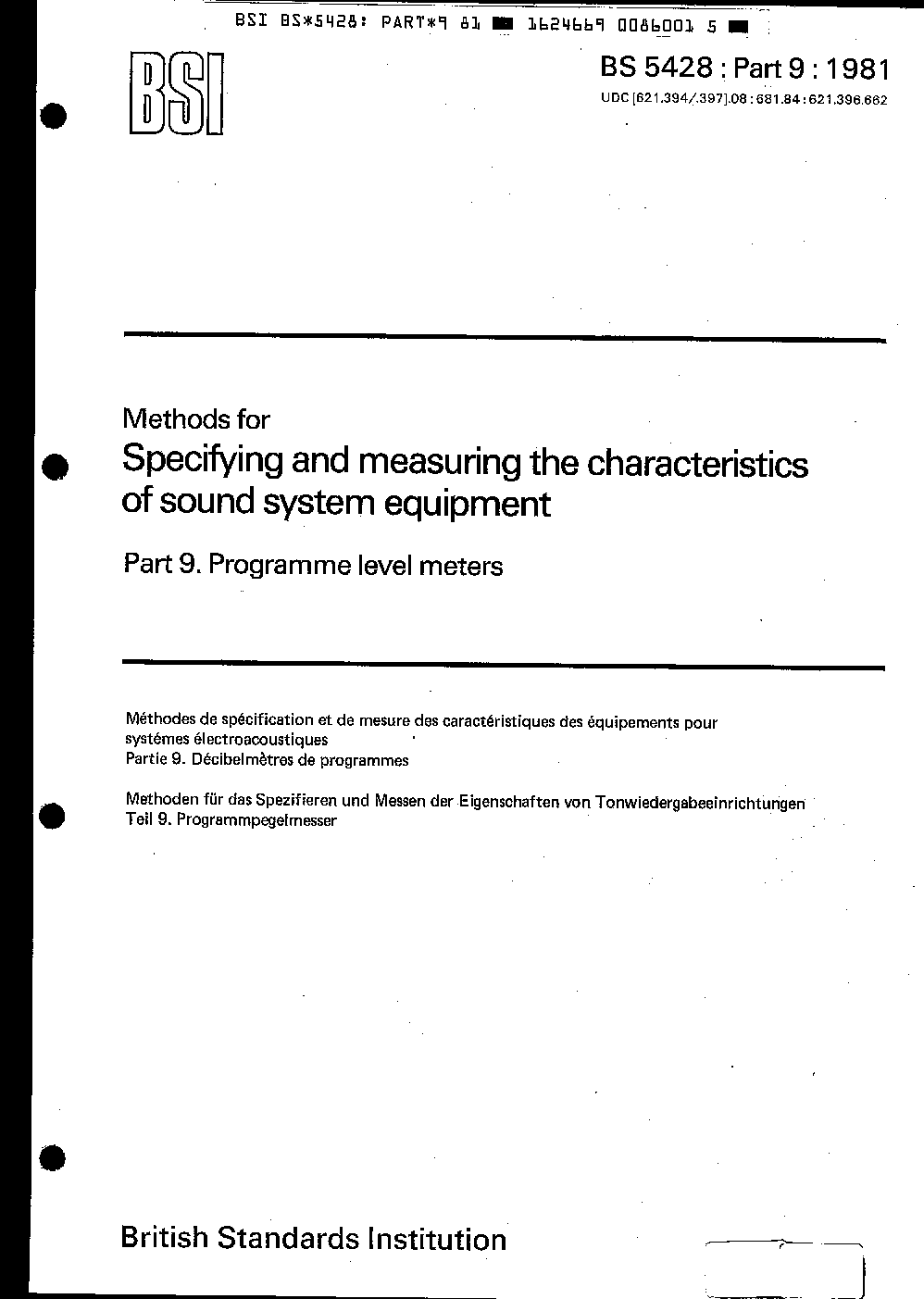 Methods for specifying and measuring the characteristics of sound system equipment Programme level meters