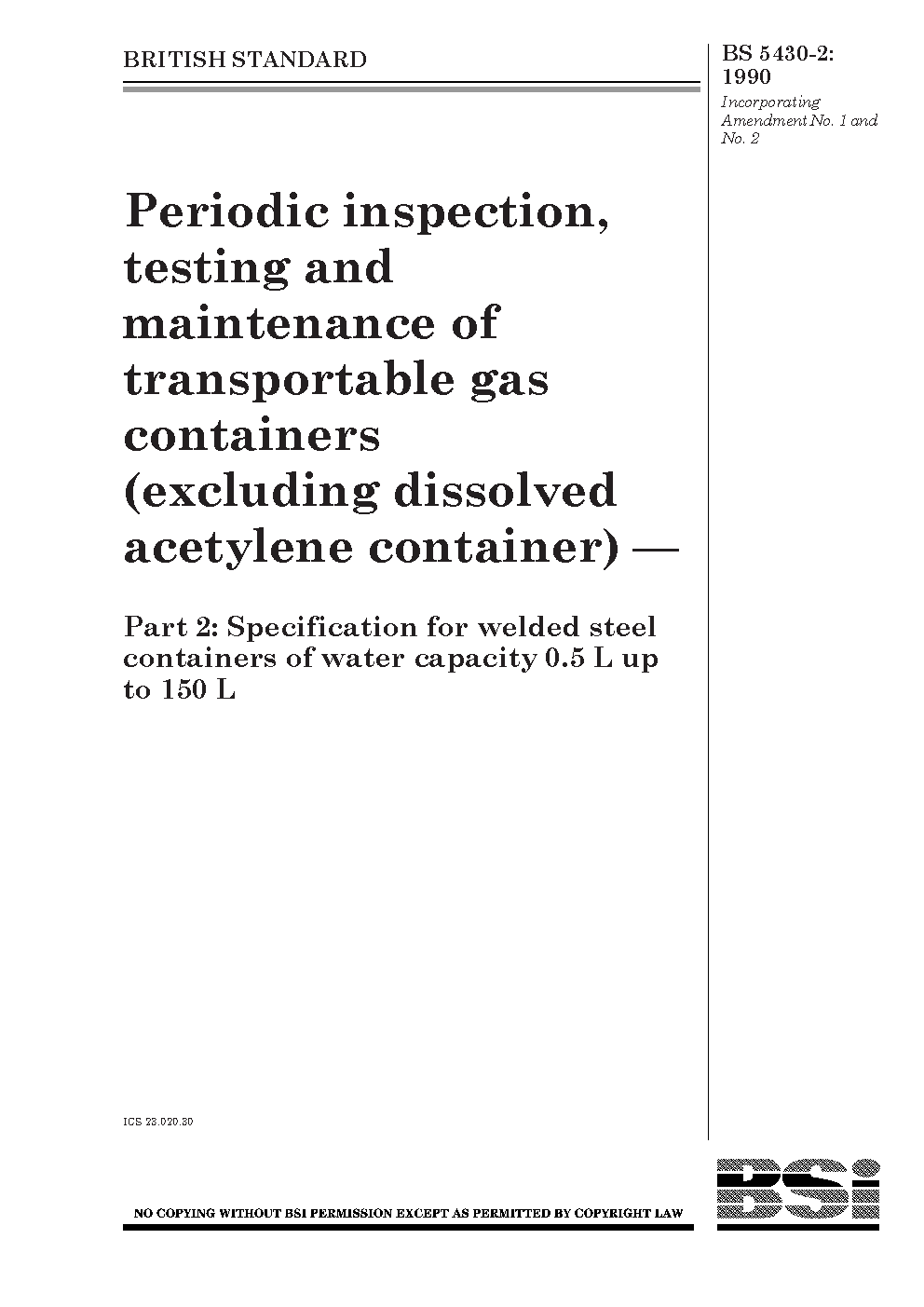 Periodic inspection, testing and maintenance of transportable gas containers (excluding dissolved acetylene containers) Specification for welded steel water capacity 0.5 L up to 150