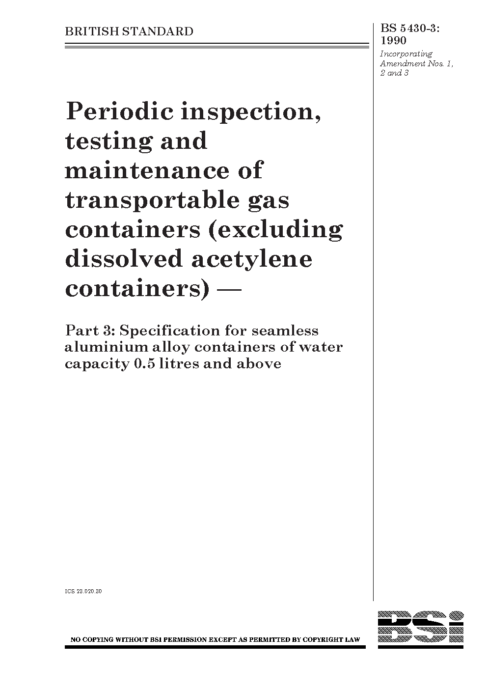 Specification for periodic inspection, testing and maintenance of transportable gas containers (excluding dissolved acetylenecontainers) Seamless aluminium alloy