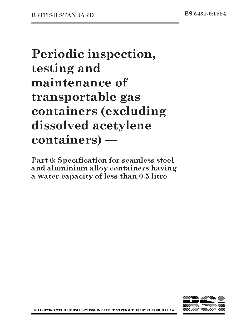 Periodic inspection, testing and maintenance of transportable gas containers (excluding dissolved acetylene containers) Specification for seamless steel aluminium alloy having a water capacity less than 0.5 litre