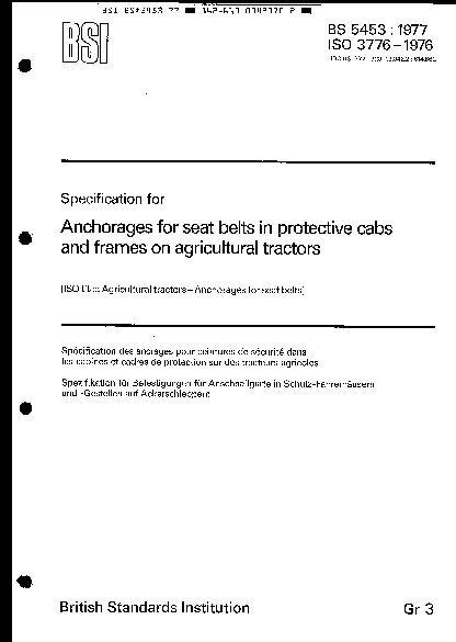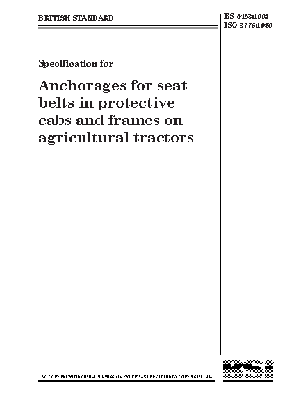 Specification for anchorages for seat belts in protective cabs and frames on agricultural tractors