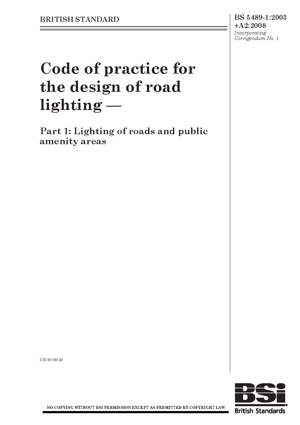 Code of practice for the design road lighting Lighting roads and public amenity areas