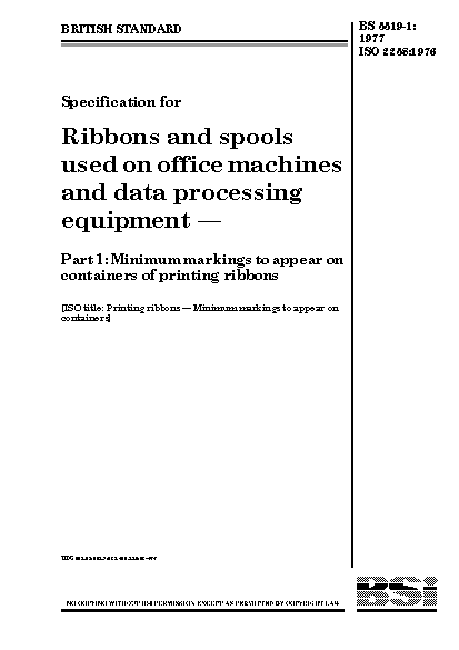 Ribbons and spools used on office machines data processing equipment Minimum markings to appear containers of printing ribbons