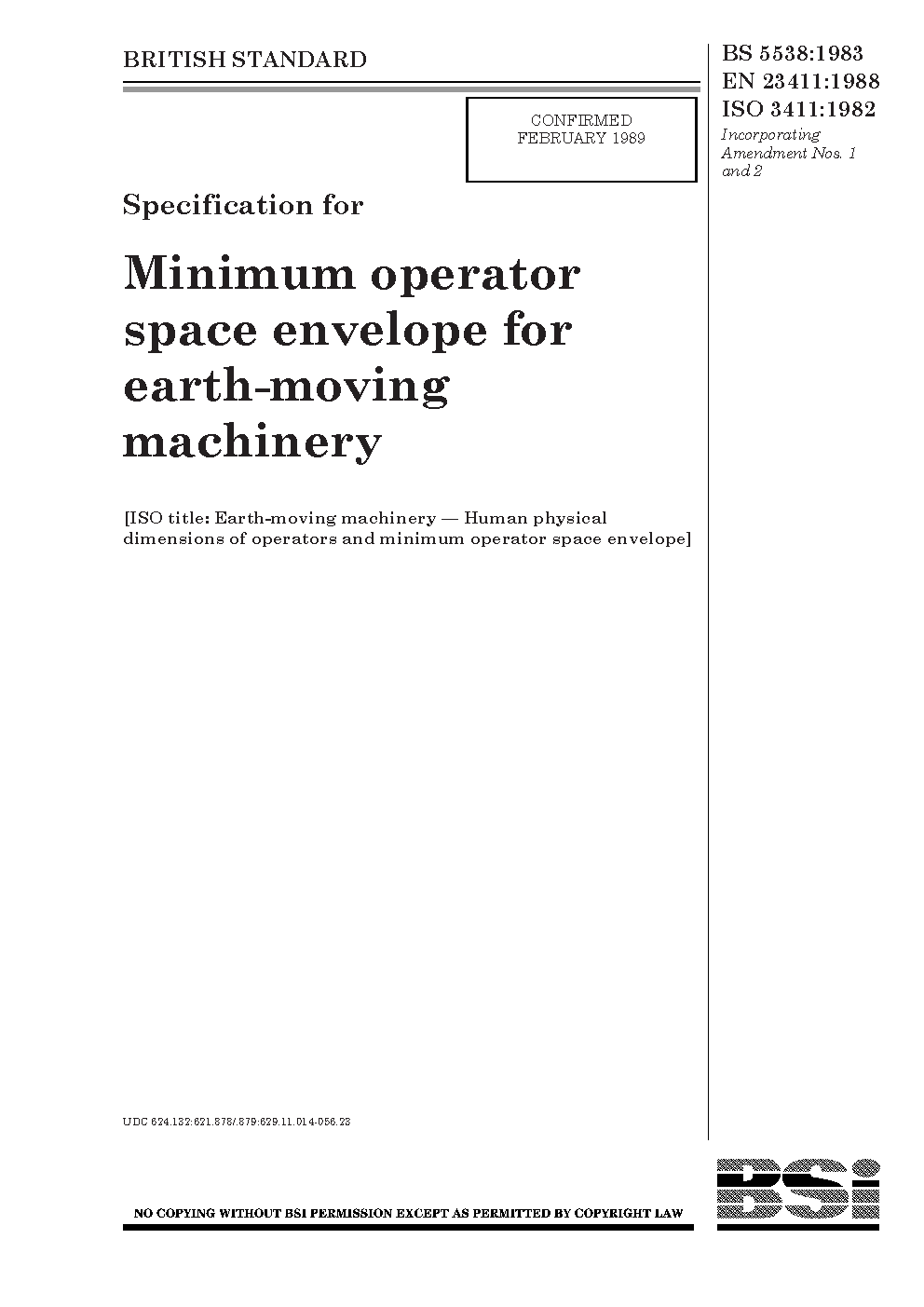 Specification for earth-moving machinery human physical dimensions of operators and minimum operator space envelope