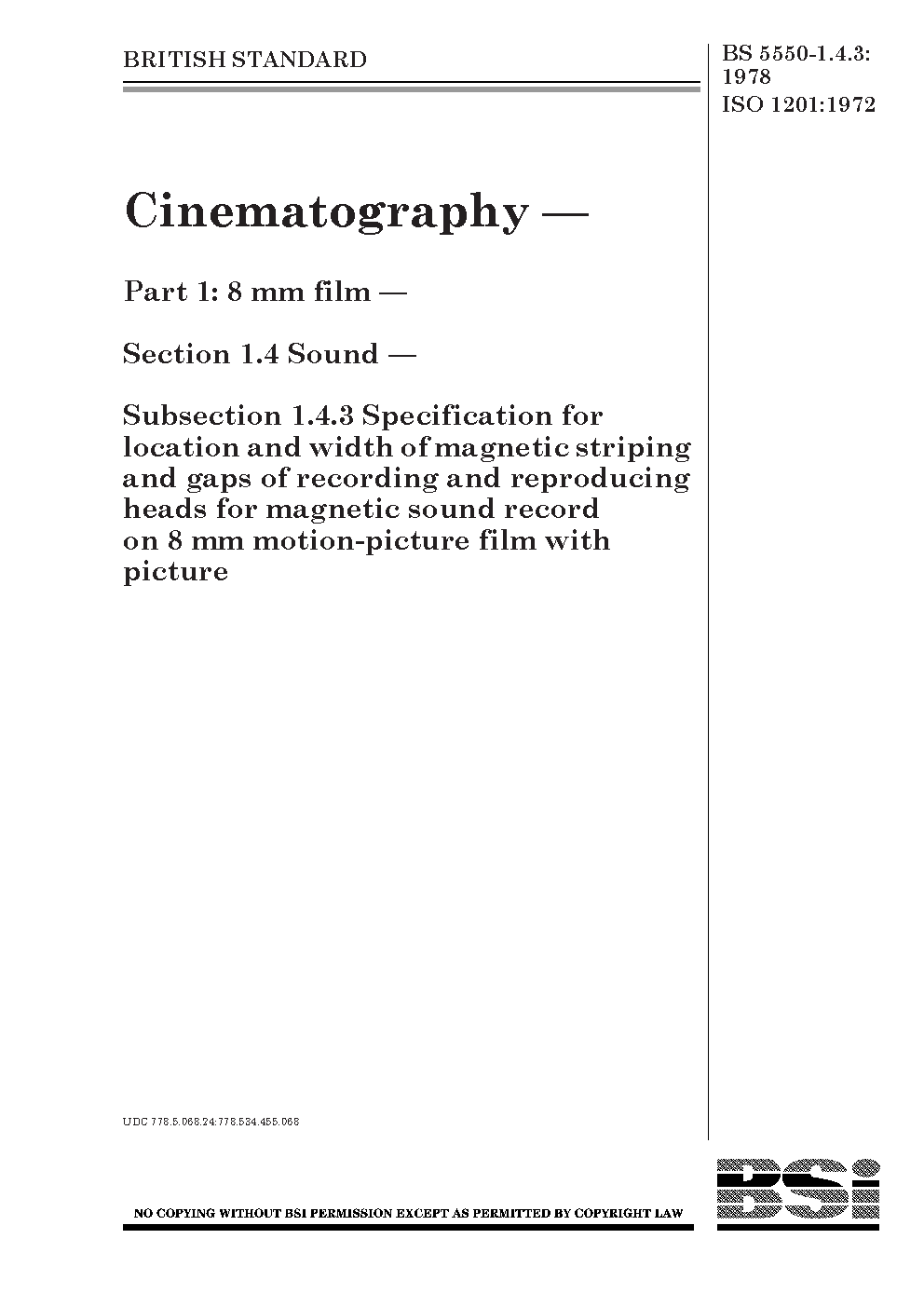 Cinematography. 8 mm film. Sound Specification for location and width of magnetic striping gaps recording reproducing heads sound record on motion-picture film with picture