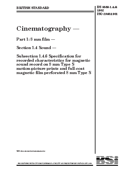 Cinematography. 8 mm film. Sound Specification for recorded characteristics magnetic sound record on Type S motion-picture prints and full-coat film perforated