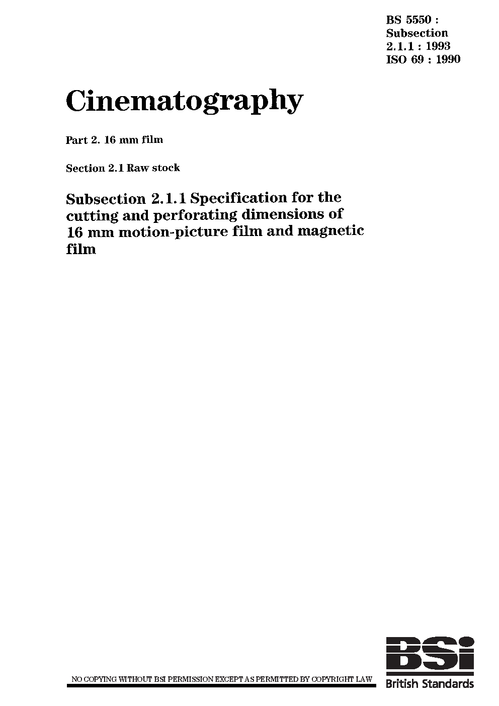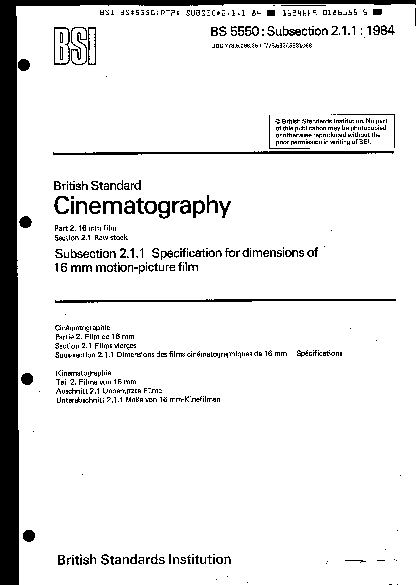 Cinematography. 16 mm film. Raw stock Specification for dimensions of motion-picture film