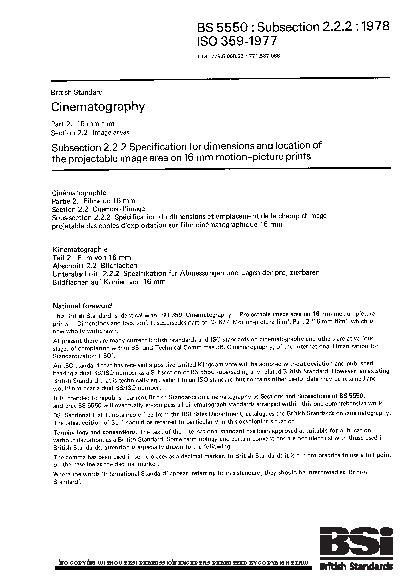 Cinematography. 16 mm film. Image areas Specification for dimensions and location of the projectable image area on motion-picture prints