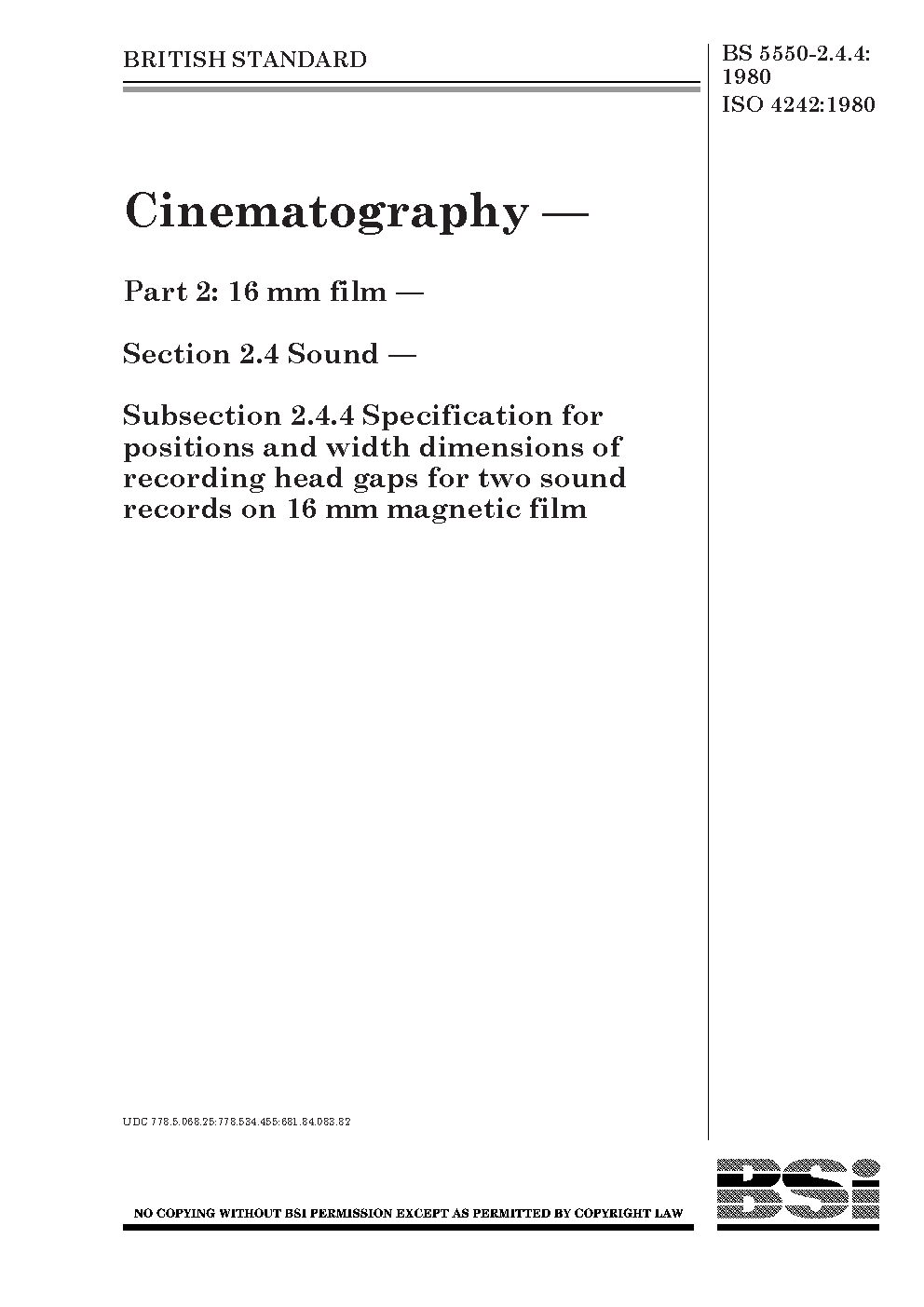 Cinematography;Recording equipment components;Magnetic recording;Dimensions;Photographic film;Sound recording;Motion-picture film;Motion-picture film size;Magnetic heads;Width;Position;Velocity