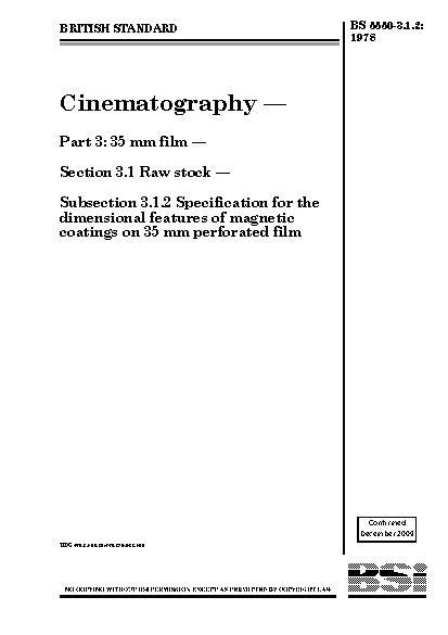Photographic film;Dimensions;Perforations;Sound tracks;Coatings;Thickness;Cinematography;Motion-picture film size;Magnetic recording;Motion-picture film