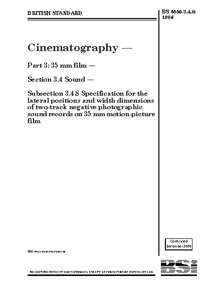 Cinematography. 35 mm film. Sound Specification for the lateral positions and width dimensions of two-track negative photographic sound records on motion-picture film
