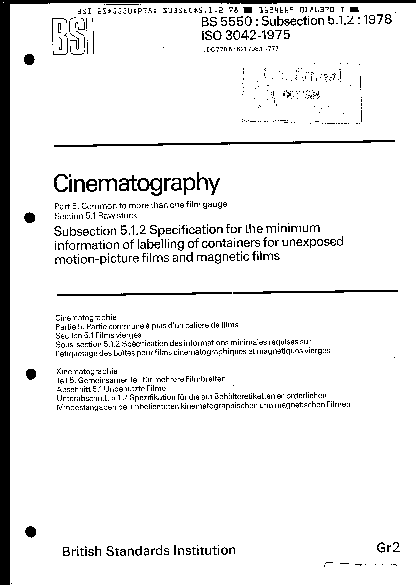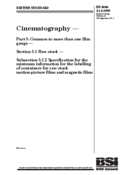 Cinematography Common to more than one film gauge Raw stock. Specification for the minimum information labelling of containers raw stock motion-picture films and magnetic fil
