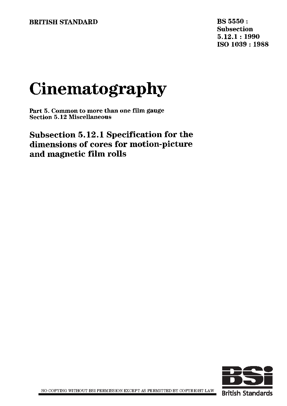 Cinematography. Common to more than one film gauge. Miscellaneous Specification for the dimensions of cores motion-picture and magnetic rolls