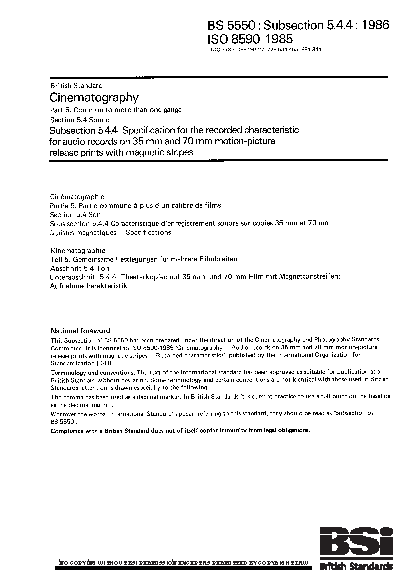 Cinematography. Common to more than one gauge. Sound Specification for the recorded characteristic audio records on 35 mm and 70 motion-picture release prints with magnetic stripes