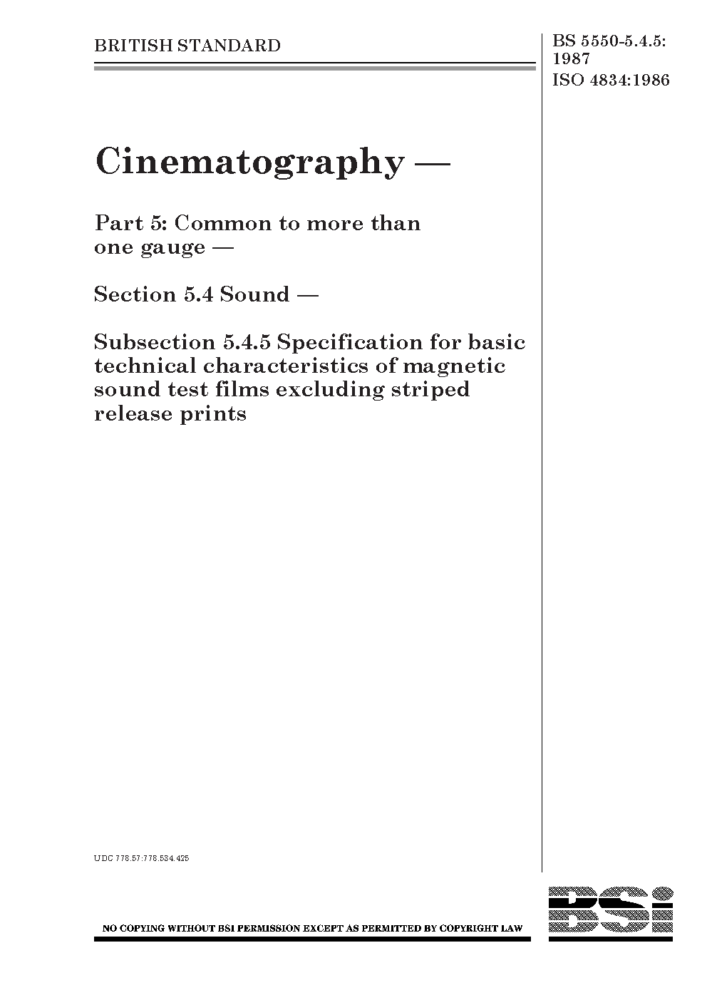 Cinematography. Common to more than one gauge. Sound Specification for basic technical characteristics of magnetic sound test films excluding striped release prints