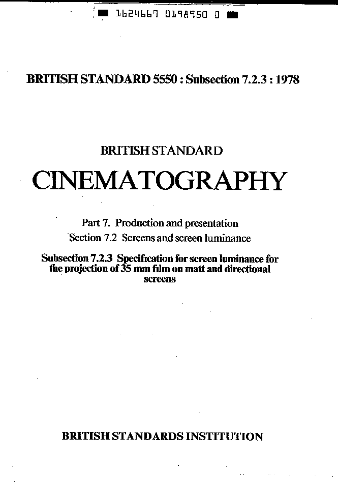 Cinematography. Production and presentation. Screens screen luminance Specification for the projection of 35 mm film on matt directional screens