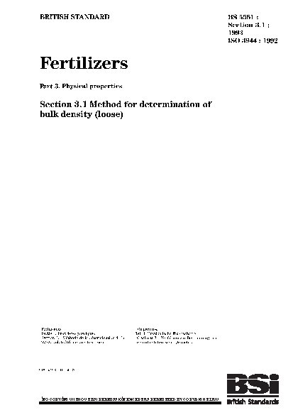 Fertilizers. Physical properties Method for the determination of bulk density (loose)