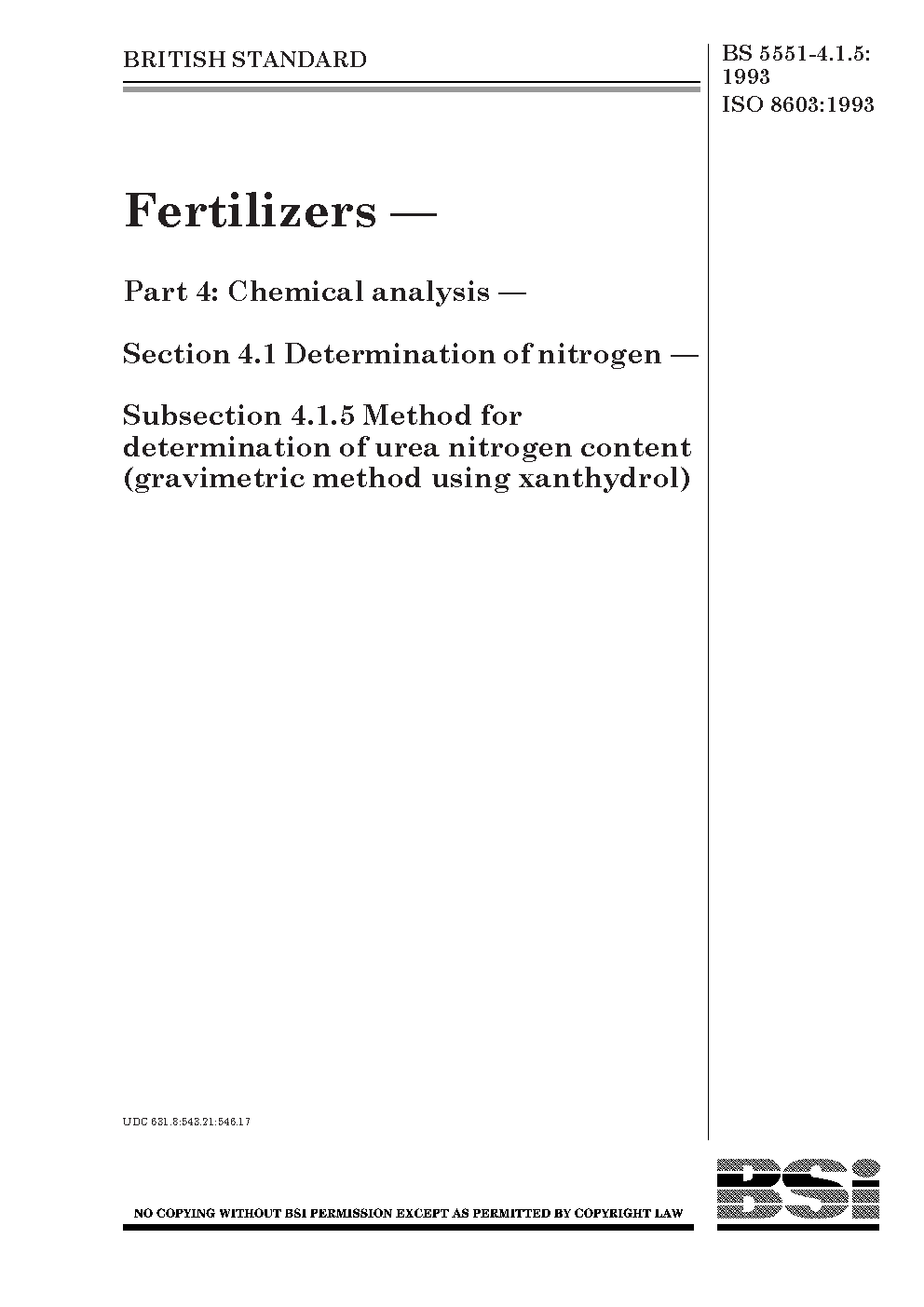 Fertilizers. Chemical analysis. Determination of nitrogen. Method for determination urea nitrogen content (gravimetric method using xanthydrol)