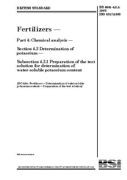 Fertilizers;Specimen preparation;Solutions;Agricultural chemicals;Determination of content;Potassium;Chemical analysis and testing;Aqueous extraction methods;Soil improvement