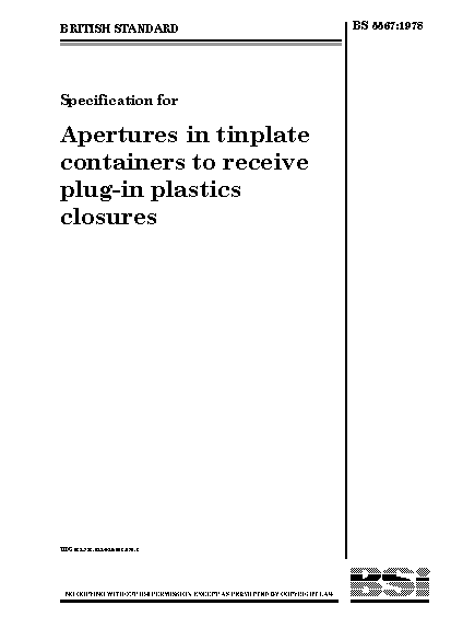 Specification for apertures in tinplate containers to receive plug-in plastics closures