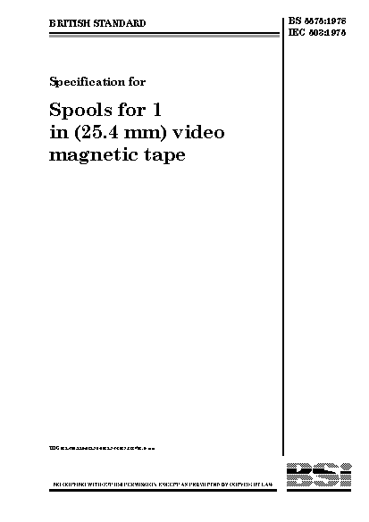 Specification for spools for 1 in (25.4 mm) video magnetic tape